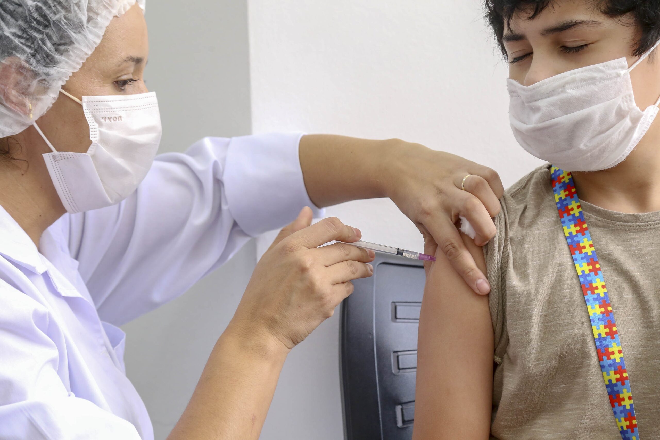 Todos os municípios já vacinam por faixa etária, sem comorbidades. Pelo menos 344 municípios já vacinam crianças com 5 anos ou mais; 43 estão vacinando acima de 6 anos; seis acima de 7 anos; três acima de 8 anos; um acima de 9 anos e dois acima de 10 anos.
