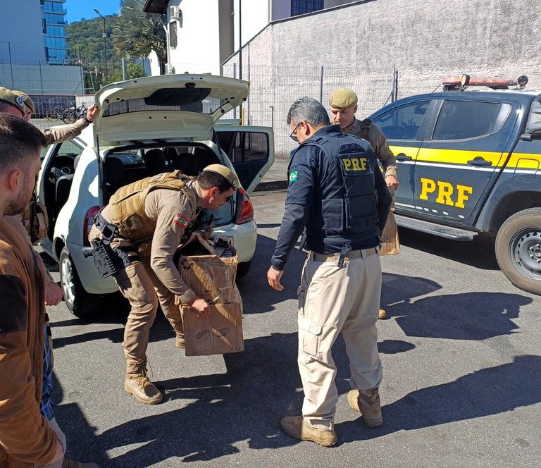 Com base na troca de informações entre as forças de segurança, os agentes localizaram e abordaram o caminhão suspeito na rodovia estadual SC 108.