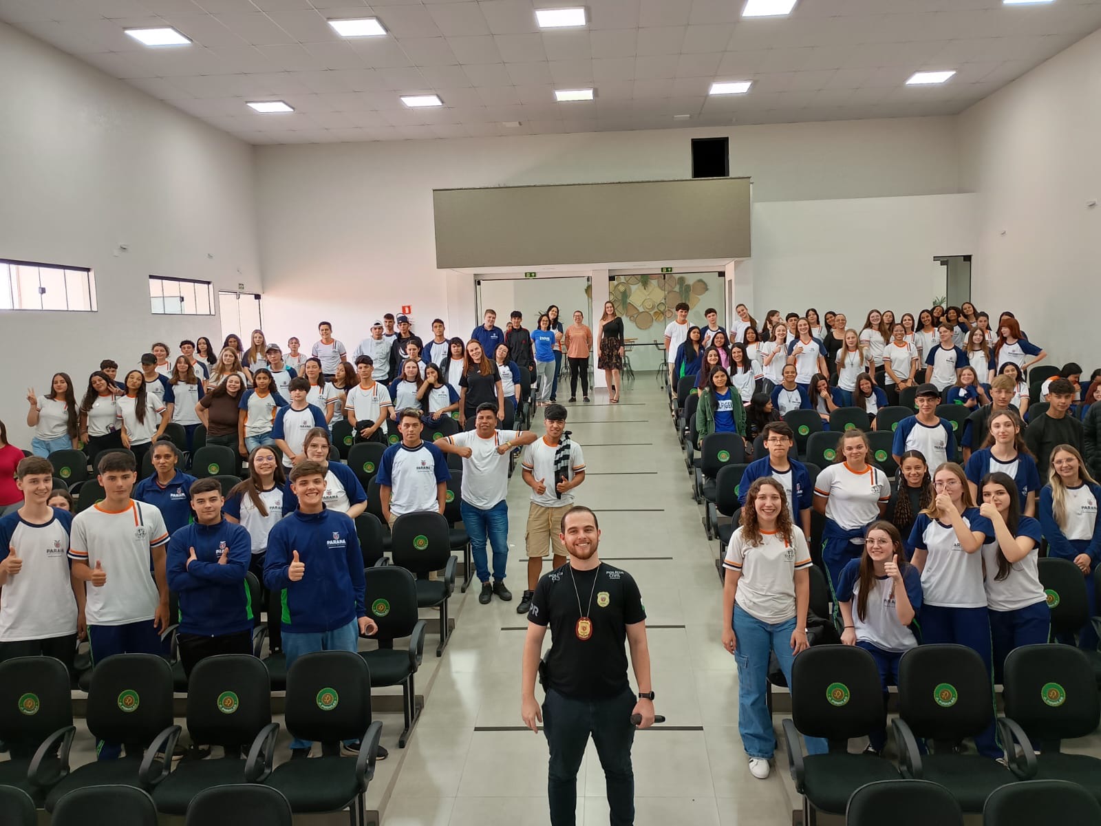 O Colégio Estadual Prof. Reni Corrêia Gamper promoveu uma importante atividade educativa no Centro Cultural Júlio Podolan, nesta quinta-feira (13), com a participação do delegado da Polícia Civil de Manoel Ribas. Dr. Rafael.
