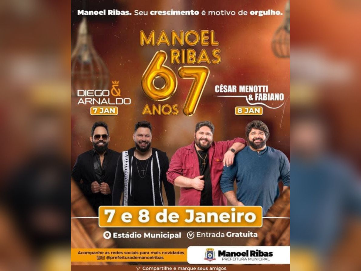 Aniversário de Manoel Ribas terá show de César Menotti e Fabiano