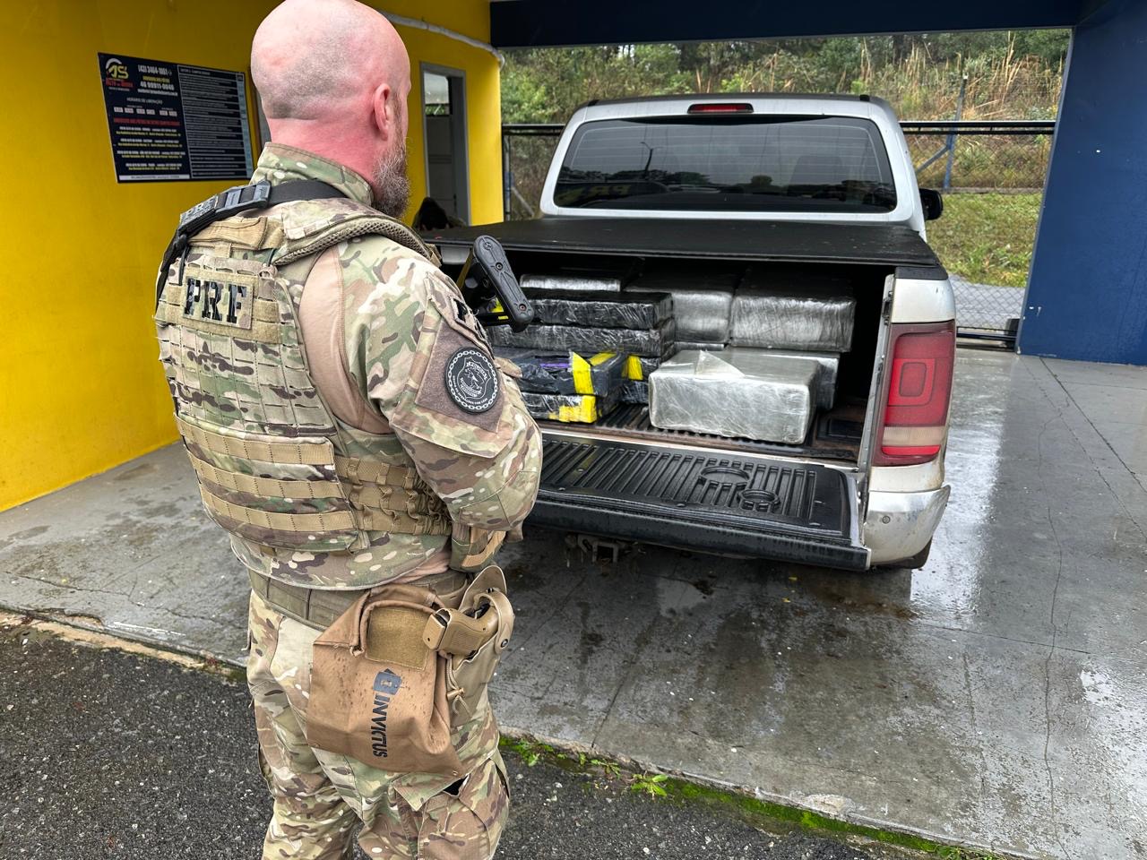 Um carregamento de 355 quilos de maconha foi apreendido pela Polícia Rodoviária Federal na tarde dessa segunda-feira (30), na BR 277, em Balsa Nova, região metropolitana de Curitiba. A droga estava escondida em uma caminhonete com registro de furto.