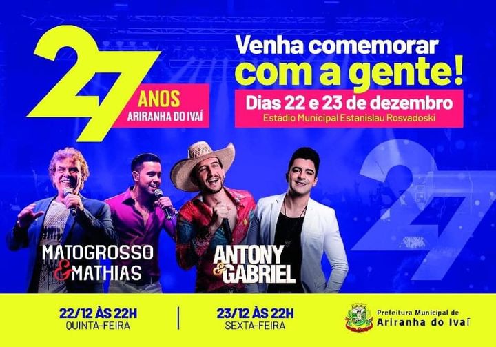 Ariranha do Ivaí divulga programação da comemoração ao aniversário da cidade