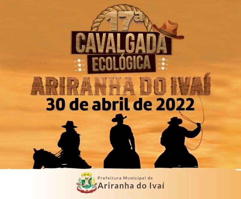 A 17° Cavalgada Ecológica de Ariranha do Ivaí é promovida pela Prefeitura em parceria com diversas secretarias. A equipe da administração municipal convida a todos para prestigiarem o evento. Será uma festa totalmente segura, de natureza recreativa, tendo como fundamento o respeito aos animais e as famílias. “Preparamos uma programação diversificada, com muita festa para comemorarmos esse momento especial para o nosso município”, reitera o prefeito Thiago Epifanio da Silva.