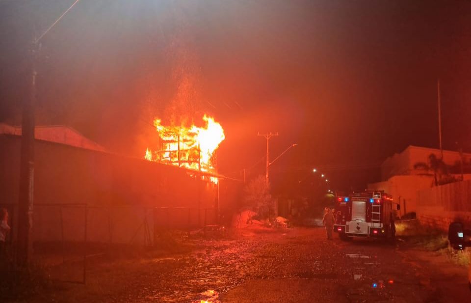 Um incêndio consumiu parte de um barracão industrial na madrugada desta quarta-feira (13), por volta das 4h, na rua João Paulo I, no bairro Industrial, em Guarapuava.