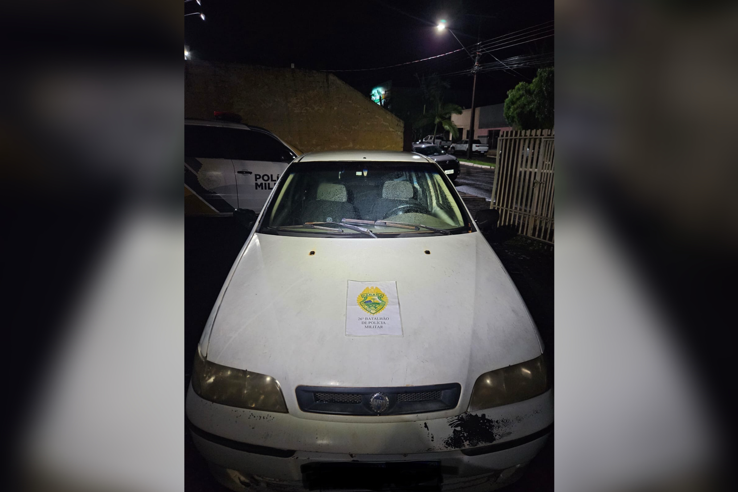 Durante a averiguação, a PM encontrou no terreno um Fiat/Palio que, após consulta ao sistema, apresentou alerta de furto registrado em 2021 em Imbituva.