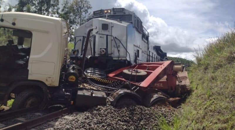 Caminhão é atingido por trem após enroscar na linha férrea em Ortigueira