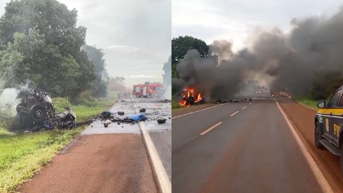Já o motorita do caminhão ficou com 60% do corpo queimado e precisou ser entubado. Ele foi transportado de helicóptero para um hospital em Maringá.