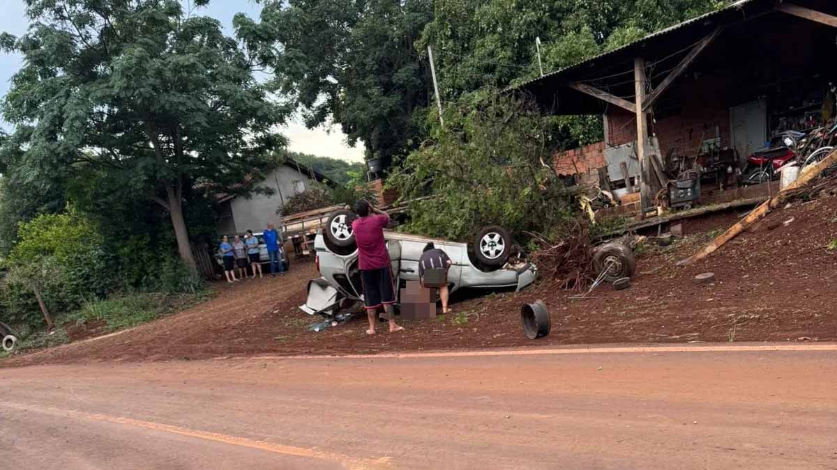 Um Gol prata capotou na Estrada do Jardim Florestal, em Jardim Alegre, no início da noite desse domingo (7).
