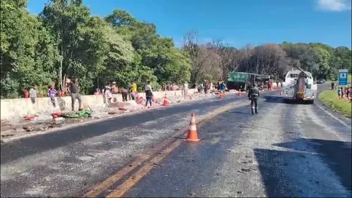 Carga de R$ 75 mil em energéticos é saqueada após carreta tombar no Paraná