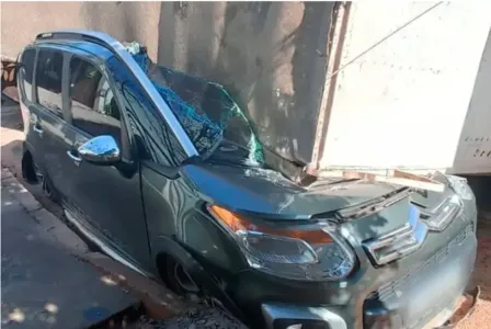 Uma carreta tombou na tarde desse sábado (28), na rotatória entre a Rua Chile e a Avenida Franklin Delano Roosevelt, no bairro Jardim Alvorada, em Maringá, e acabou esmagando um carro que estava estacionado no local. Apesar do impacto, não houve feridos.
