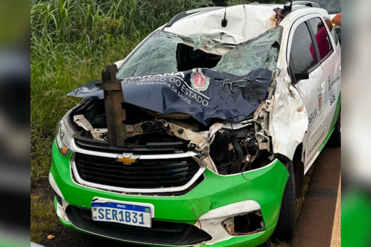 Uma ambulância seguia pela pista quando atingiu um cavalo que estava na rodovia e, logo na sequência, um Chevrolet/Spin, da Saúde do município de Manoel Ribas, colidiu contra o animal.