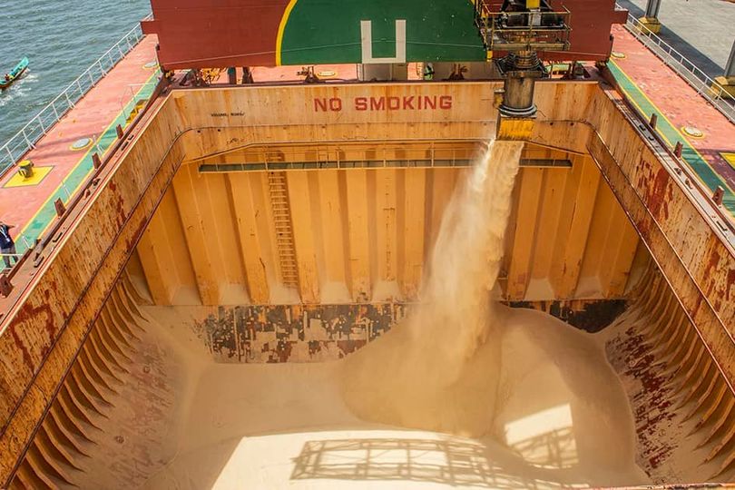“Como é feito a céu aberto, o carregamento é suspenso pelo capitão do navio quando chove, para proteger a carga”, explica o diretor de operações da empresa pública, Luiz Teixeira da Silva.