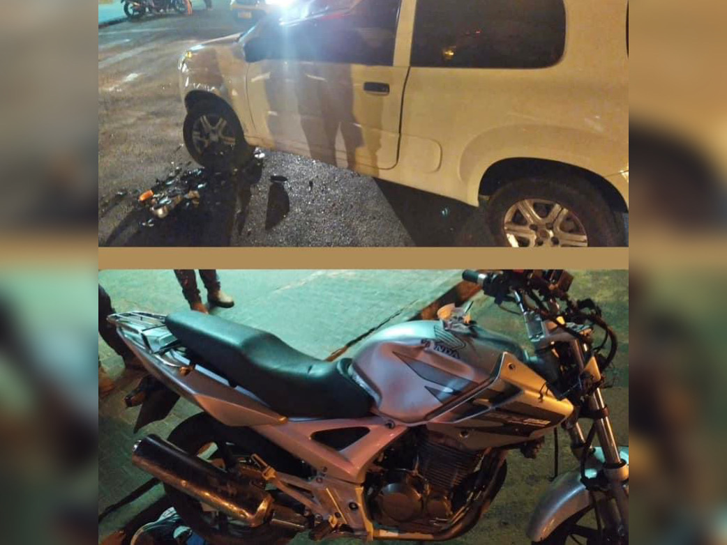 O condutor (29 anos) da moto teve ferimentos moderados, com fraturas expostas, e foi encaminhado pela equipe de plantão do hospital municipal para atendimento médico.