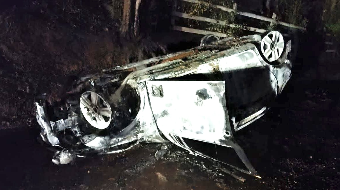Um corpo foi encontrado carbonizado na noite dessa terça-feira (8), por volta das 22h, após um carro capotar e pegar fogo, na Zatterlândia, em Pinhão.