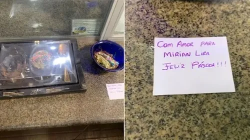 Segundo o pai da criança, na noite dessa quarta-feira (16), um ovo foi entregue, de forma anônima, por um motoboy na casa da família com o seguinte bilhete: “Com amor, para Miriam Lira. Feliz Páscoa”.