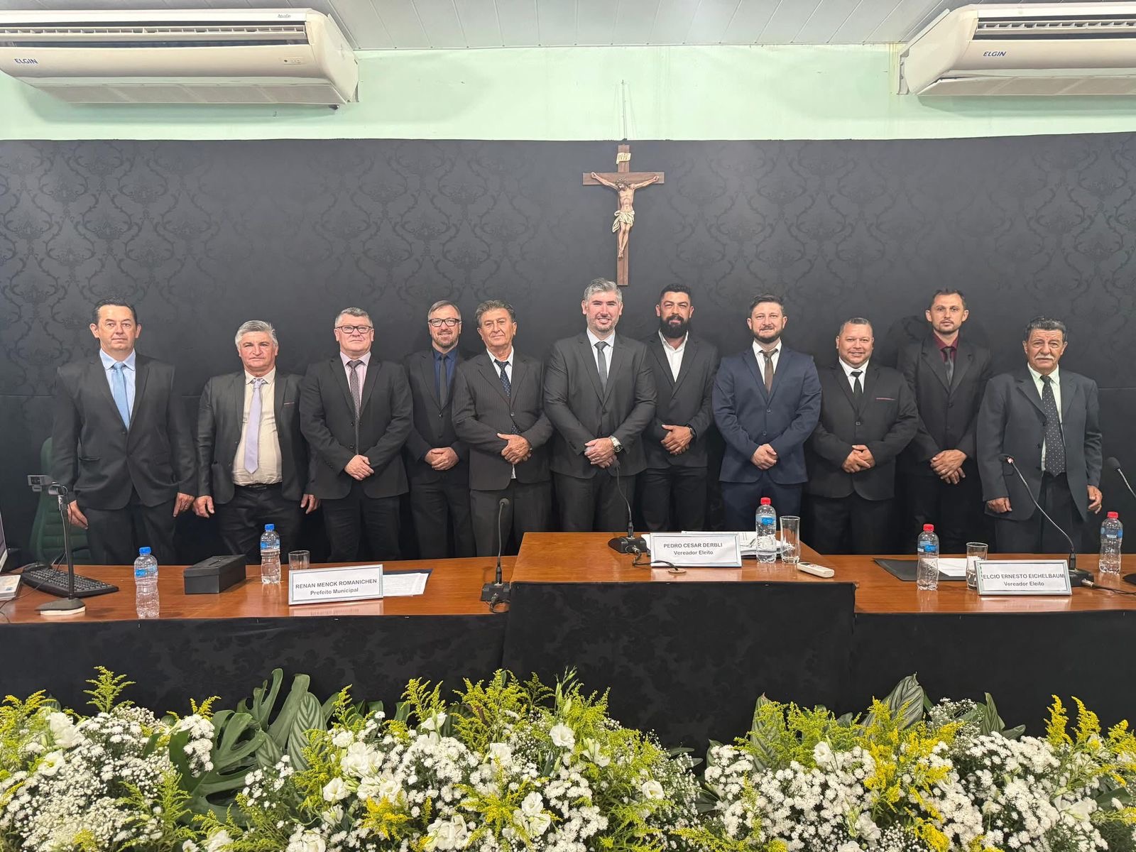 O prefeito Renan Romaninchen, o vice-prefeito Rodrigo e os nove vereadores eleitos de Cândido de Abreu foram empossados na manhã desta quarta-feira (1º).