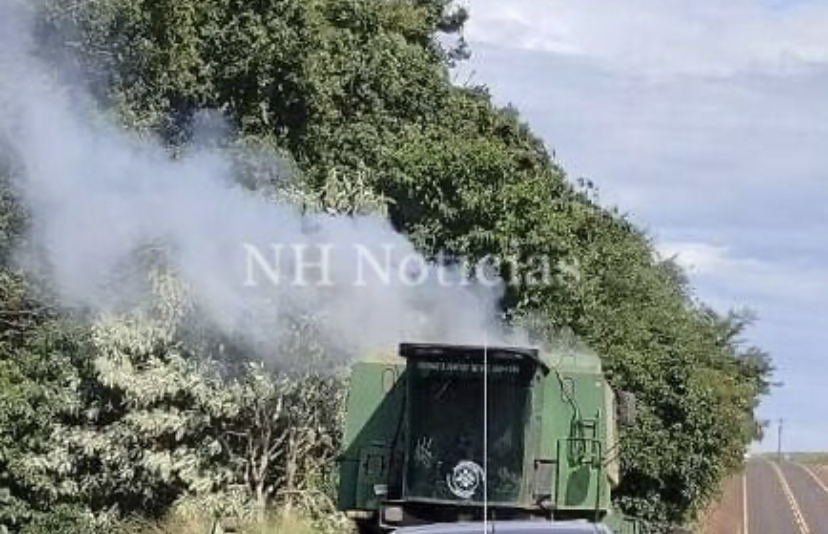 Uma colheitadeira pegou fogo na PR 466, próximo a Coamo de Ivaiporã, por volta das 12h30.