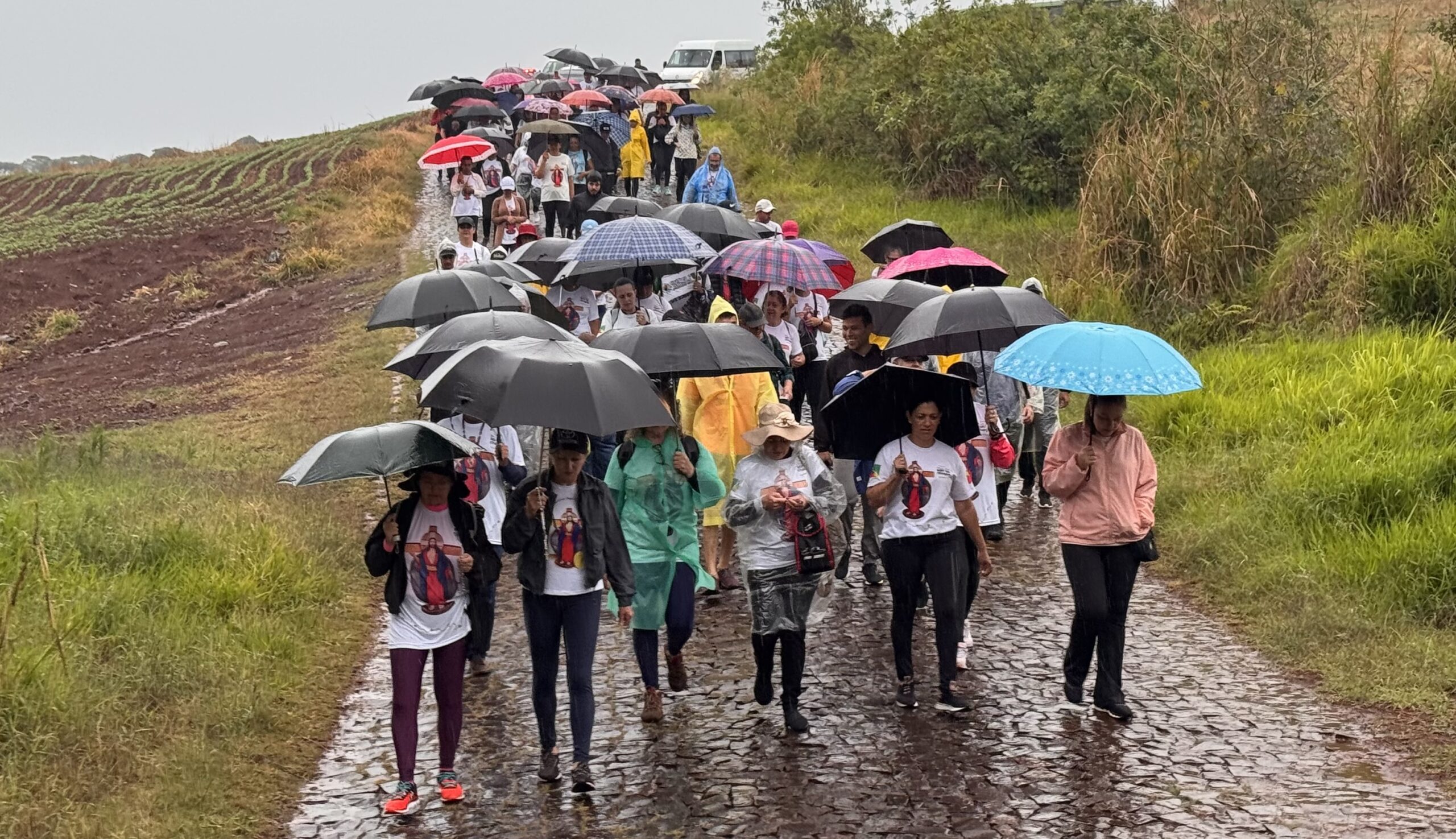 Em Ivaiporã, dezenas de católicos enfrentam a chuva para participar da Caminhada de Jesus das Santas Chagas