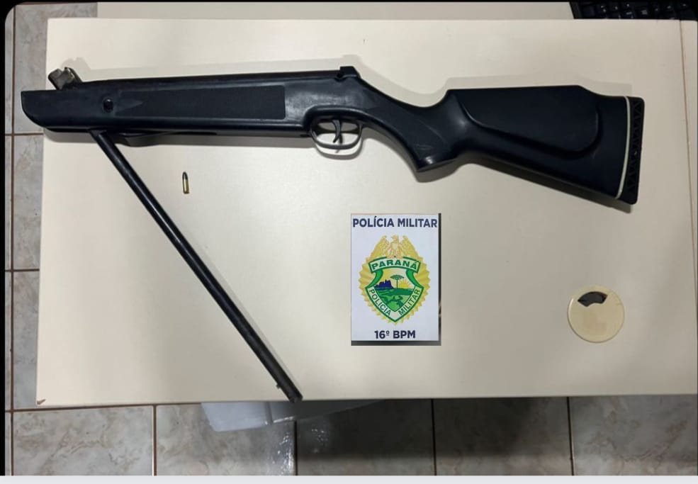 Ao ir até a residência do casal, a mulher entregou uma espingarda de pressão 5.5, ‘broquiada’ para calibre 22, com munições.