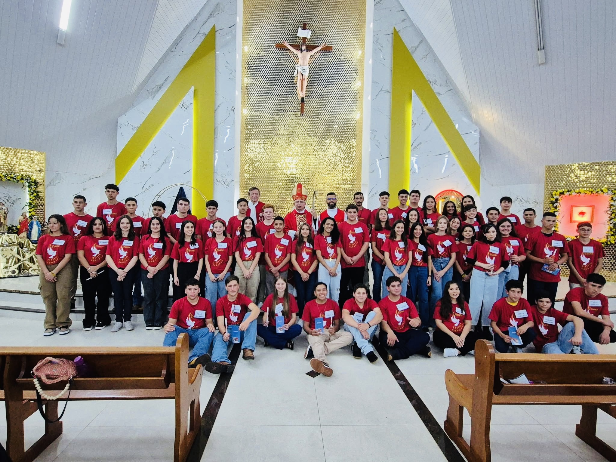 O evento foi realizado em meio as comemorações do Jubileu de Ouro da Paróquia e teve a presença do pároco, parentes, padrinhos e amigos dos crismandos.