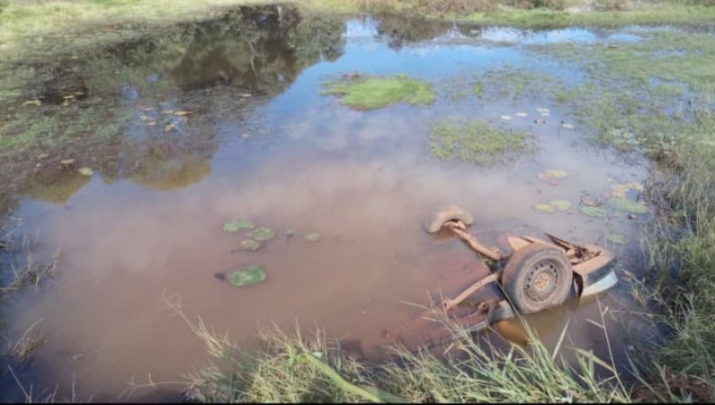 Na manhã deste domingo (24), por volta das 11h20, conforme o Corpo de Bombeiros, um homem, que passava pelo local, viu o Fiat/Strada dentro da lagoa.