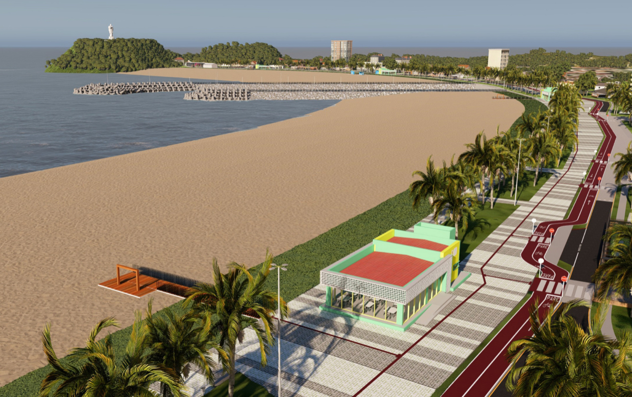 O projeto prevê, ao todo, nove estruturas marítimas voltadas para a mitigação e controle de processos erosivos ao longo da orla, para aumentar a capacidade de vazão de água da chuva para o mar e melhorar a balneabilidade das praias. São cinco guias de corrente (dois na Praia Central e três na Prainha), dois espigões em Caieiras e dois headland (Praia Central e Prainha), com a implantação de 15.563 tetrápodes.