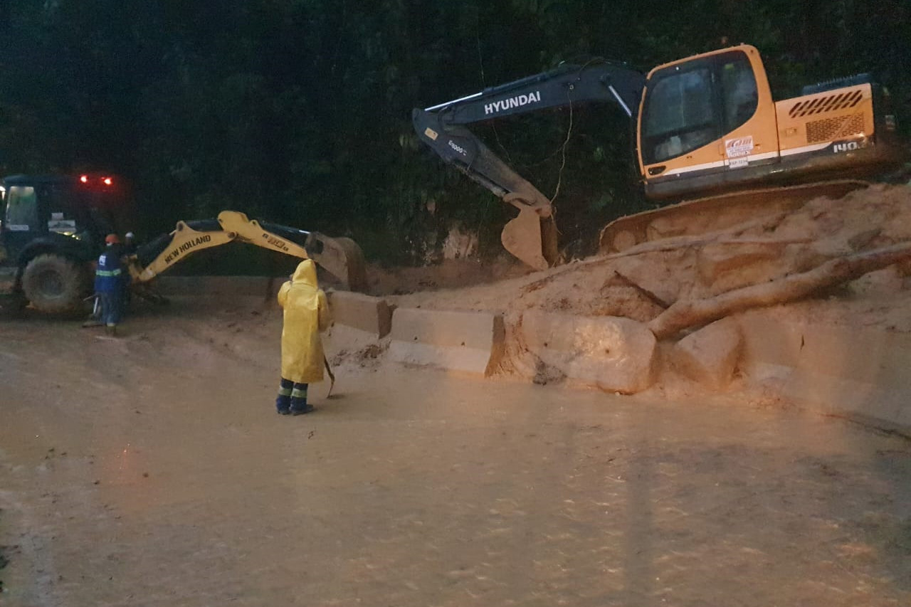Um grande volume de lama atingiu a pista, tornando impossível o tráfego de veículos no momento.