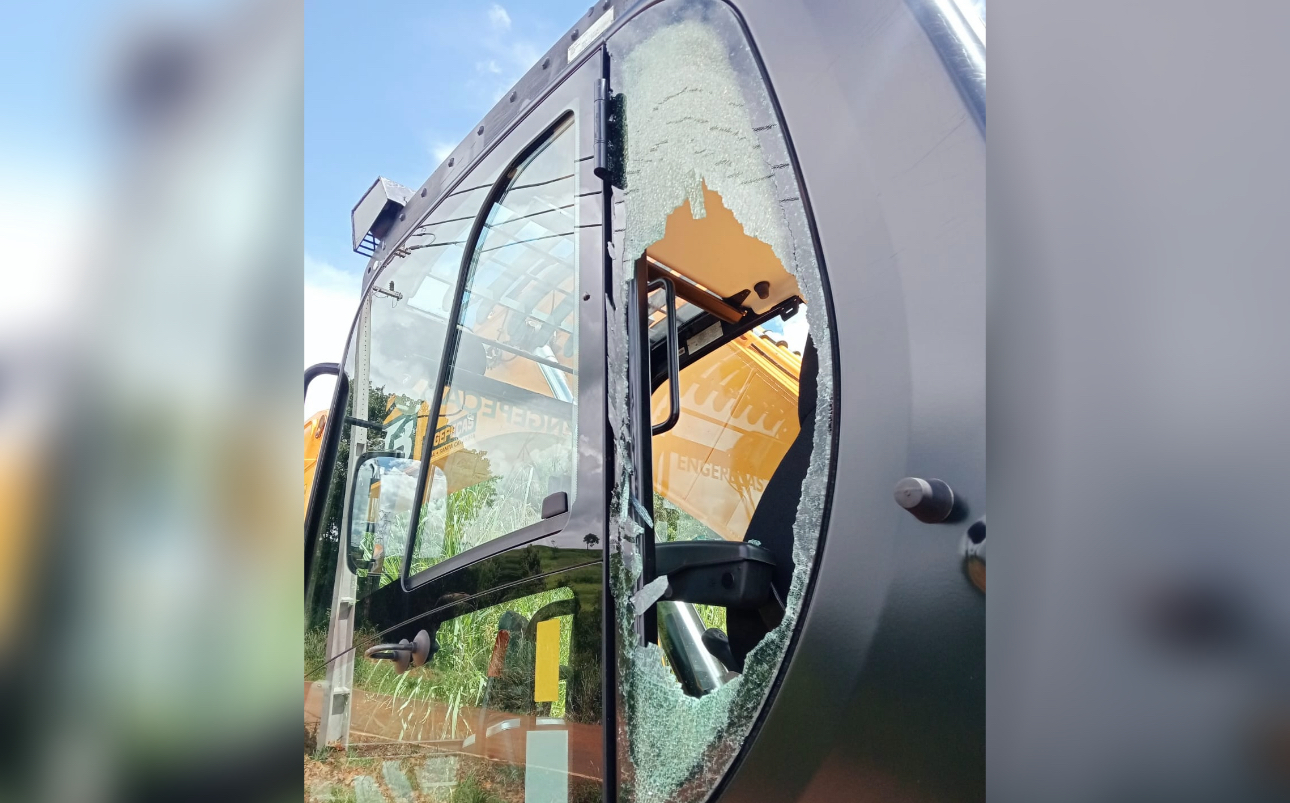 Uma escavadeira hidráulica nova da Prefeitura de Manoel Ribas foi vandalizada.