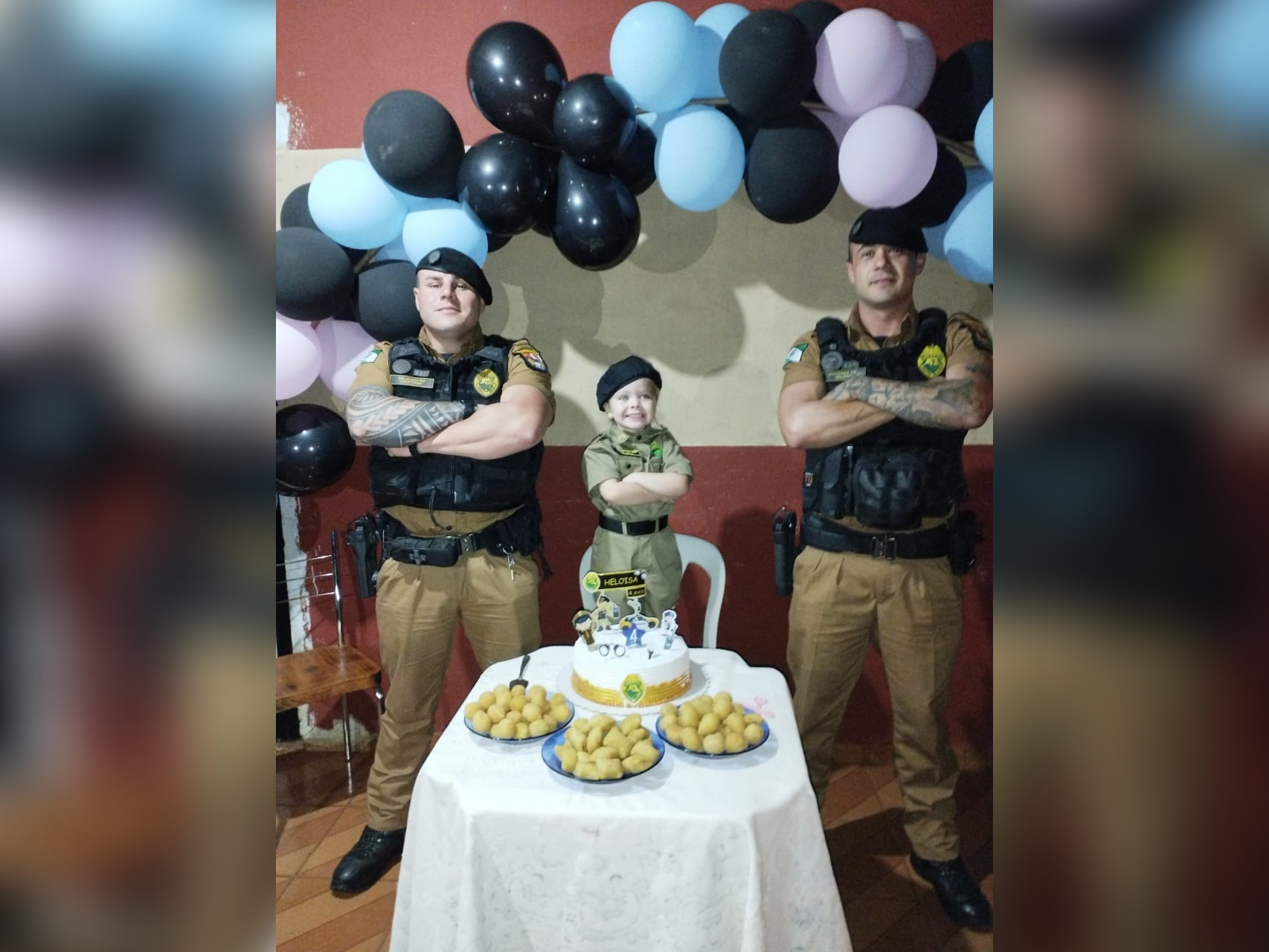 Fã da polícia em Manoel Ribas ganha surpresa na festa de aniversário