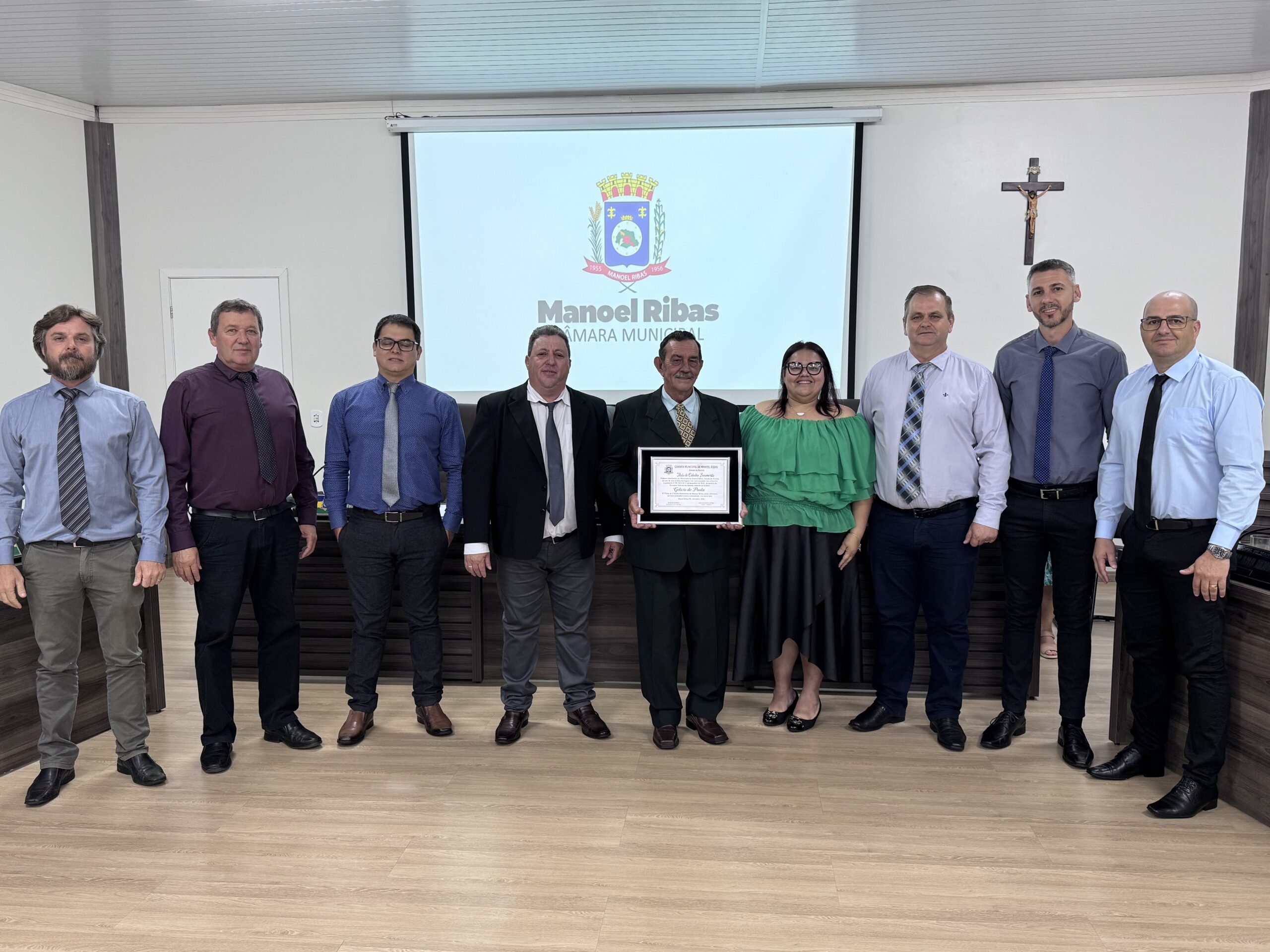 O reconhecimento foi entregue durante uma Sessão Solene na Câmara de Vereadores de Manoel Ribas e foi proposto pelo vereador Adilson dos Santos.