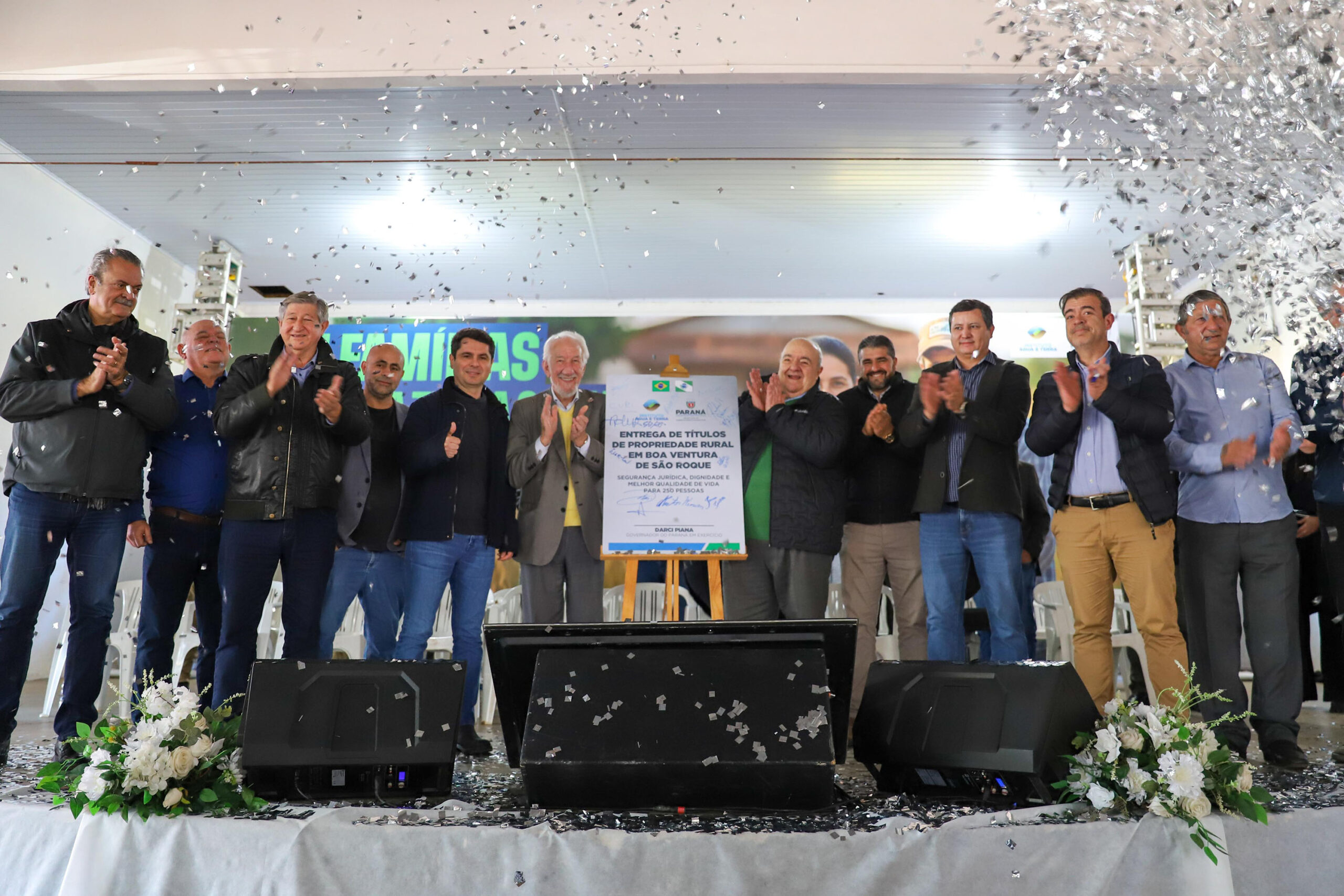 Sessenta e uma famílias de pequenos produtores rurais de Boa Ventura de São Roque, município da região Central do Paraná, receberam nessa sexta-feira (4) os títulos de suas propriedades. A entrega dos documentos foi feita pelo governador em exercício Darci Piana, dentro do projeto de regularização fundiária rural do Governo do Estado, coordenado pelo Instituto Água e Terra (IAT).