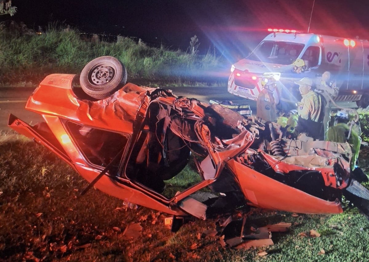 O condutor (53 anos) do Escort não resistiu aos ferimentos e morreu no local, segundo a Polícia Rodoviária Estadual (PRE).