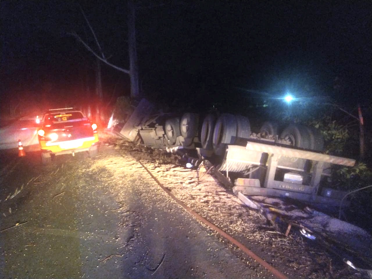 Conforme a Polícia Rodoviária Estadual (PRE), a motorista perdeu o controle do caminhão Volvo/FH12 380 (com placas de Paranaguá), saiu da pista, tombou e atingiu algumas árvores.