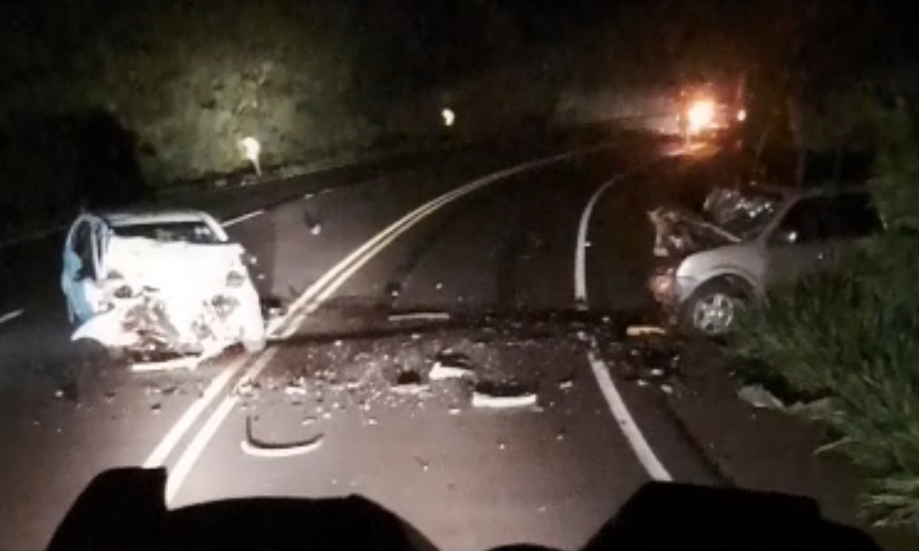 Segundo a Polícia Rodoviária Estadual (PRE), a colisão frontal envolveu um Ford/EcoSport (com placas de Iretama) e um Chevrolet/Corsa (com placas de Goioerê).
