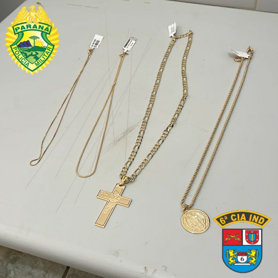 Foram recuperadas quatro correntes, uma delas com crucifixo e outra com medalha. O homem recebeu voz de prisão e foi conduzido até a 6ª CIPM para as medidas cabíveis ao caso.