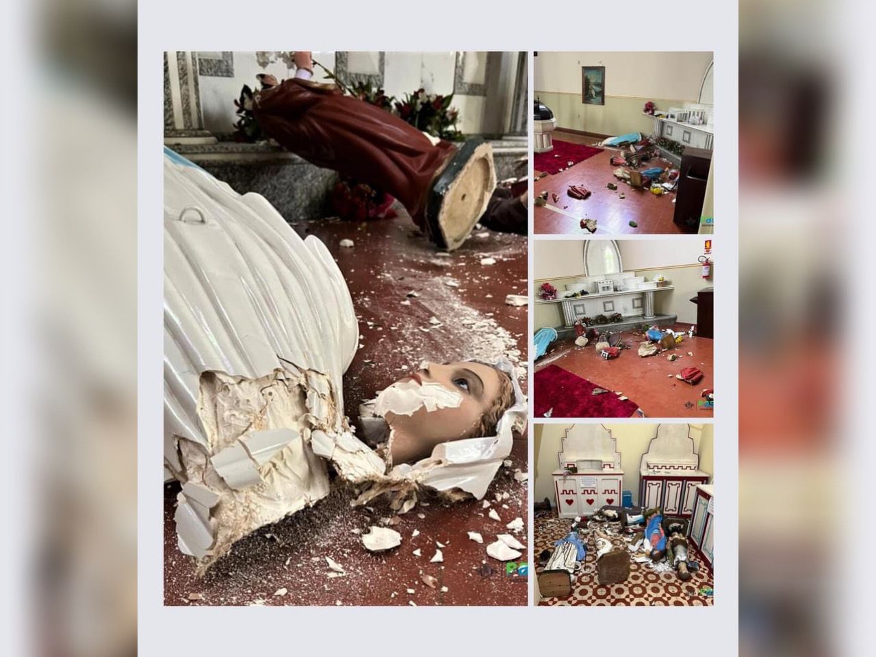“Acreditamos que isso aconteceu entre 11h45 e 12h30, e quem fez isto fechou a porta da igreja para ninguém ver, pois a igreja sempre fica aberta para as pessoas rezarem. Escutamos um certo barulho e logo alguém correu nos informar do acontecido. Foram quebradas 28 imagens no total, incluindo as imagens da sala dos santos, do batistério, a imagem do Sagrado Coração de Jesus e da Padroeira Nossa Senhora da Assunção. Graças a Deus o Sacrário onde fica Jesus Eucarístico não foi violado e também não foram danificadas as imagens do Anjos. Estamos muito tristes, mas já estamos tomando as devidas providências, analisando as imagens das câmeras”, comentou o padre Diego Ronaldo Nakalski, vigário paroquial.