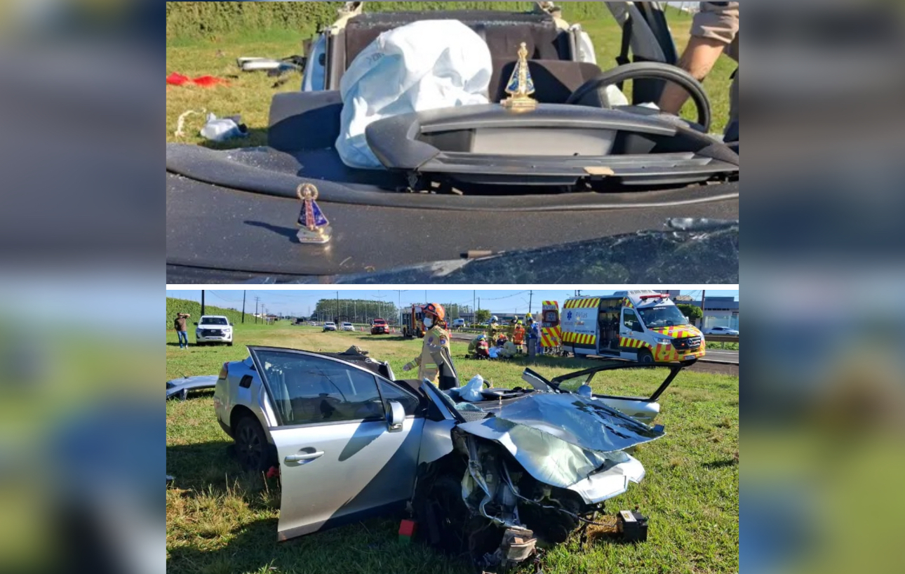 Apesar da destruição total do carro, um detalhe chamou a atenção das equipes de resgate e de quem passava pelo local: duas imagens de Nossa Senhora Aparecida, que estavam no interior do veículo, foram encontradas intactas em meio aos destroços.