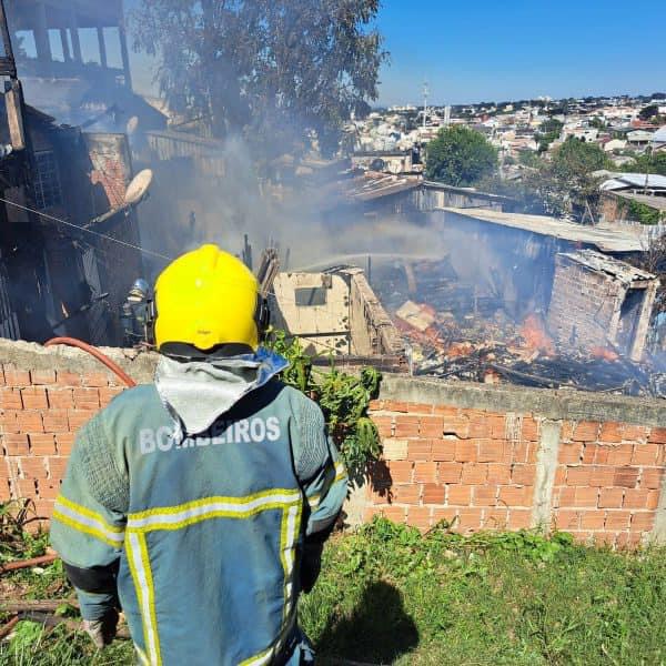 Incêndio destrói casas no Parolin e mulher fica ferida ao salvar bebê