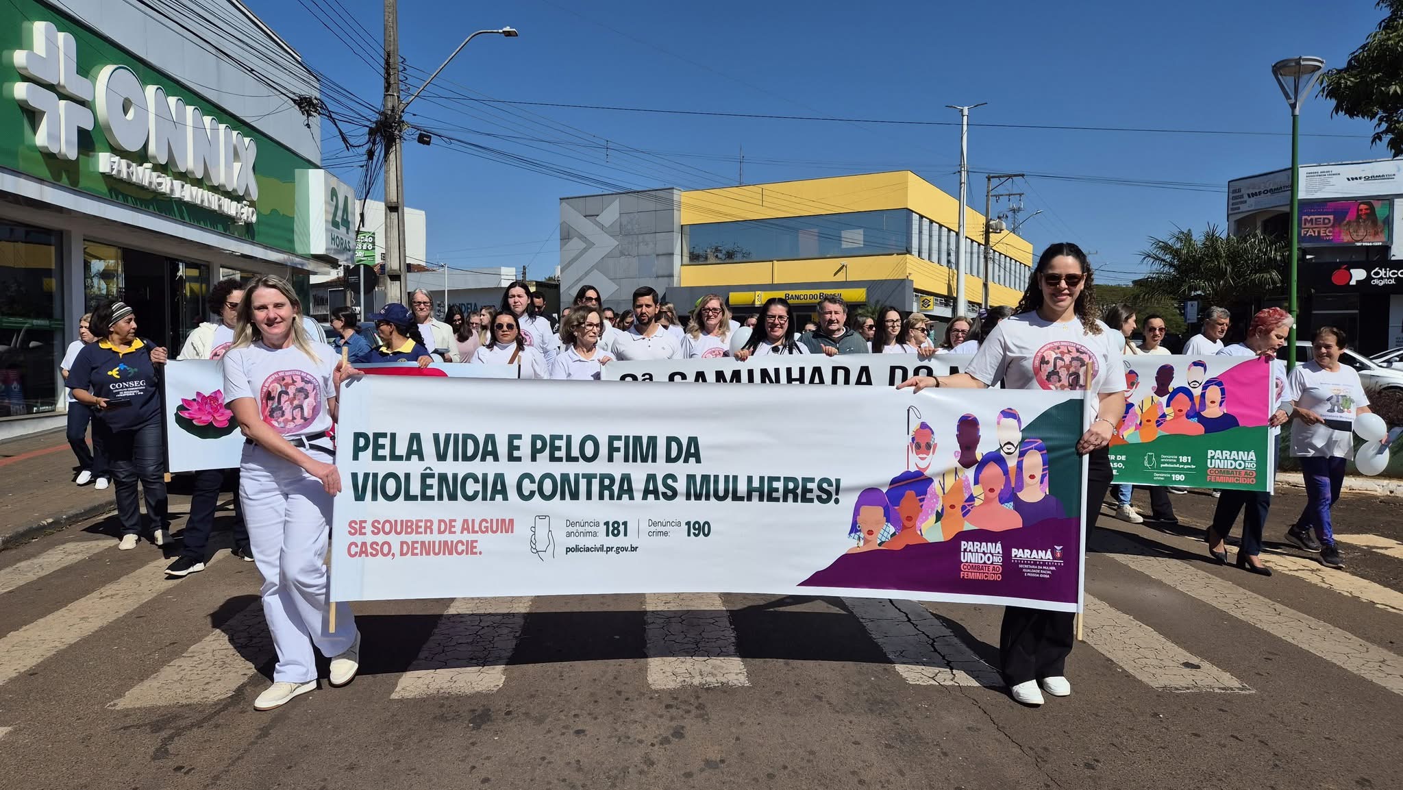 Com cartazes, camisetas e palavras de ordem, o grupo saiu em caminhada pelas ruas centrais de Ivaiporã defendendo o direito à vida e o fim da violência contra as mulheres. A mobilização reuniu representantes do Conselho Municipal da Mulher, Fórum da Comarca, Flor de Lótus, Conselho da Comunidade, Conseg, Subseção da OAB, Câmara de Vereadores, Conselho Tutelar, 22ª Regional de Saúde, Rotary Club, Polícia Civil e Militar, Associação de Senhoras Rotarianas, Secretaria Municipal de Educação, Creas, Cras, Procuradoria da Mulher e Melhor Idade.