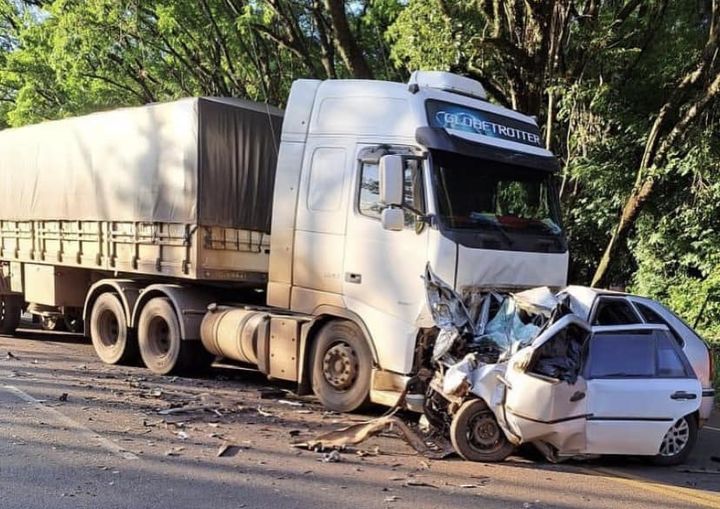 Segundo o Corpo de Bombeiros, a colisão envolveu um caminhão Volvo/FH 540 e um Volkswagen/Gol (com placas de Manoel Ribas).