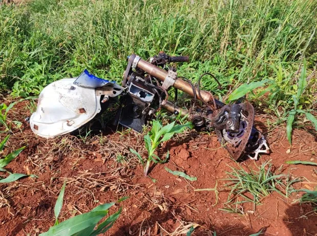 A moto ficou completamente destruída e os destroços espalhados pela lavoura. O motor da Suzuki parou próximo ao corpo da vítima. Além da PRF, a Polícia Militar (PM) também esteve no local.