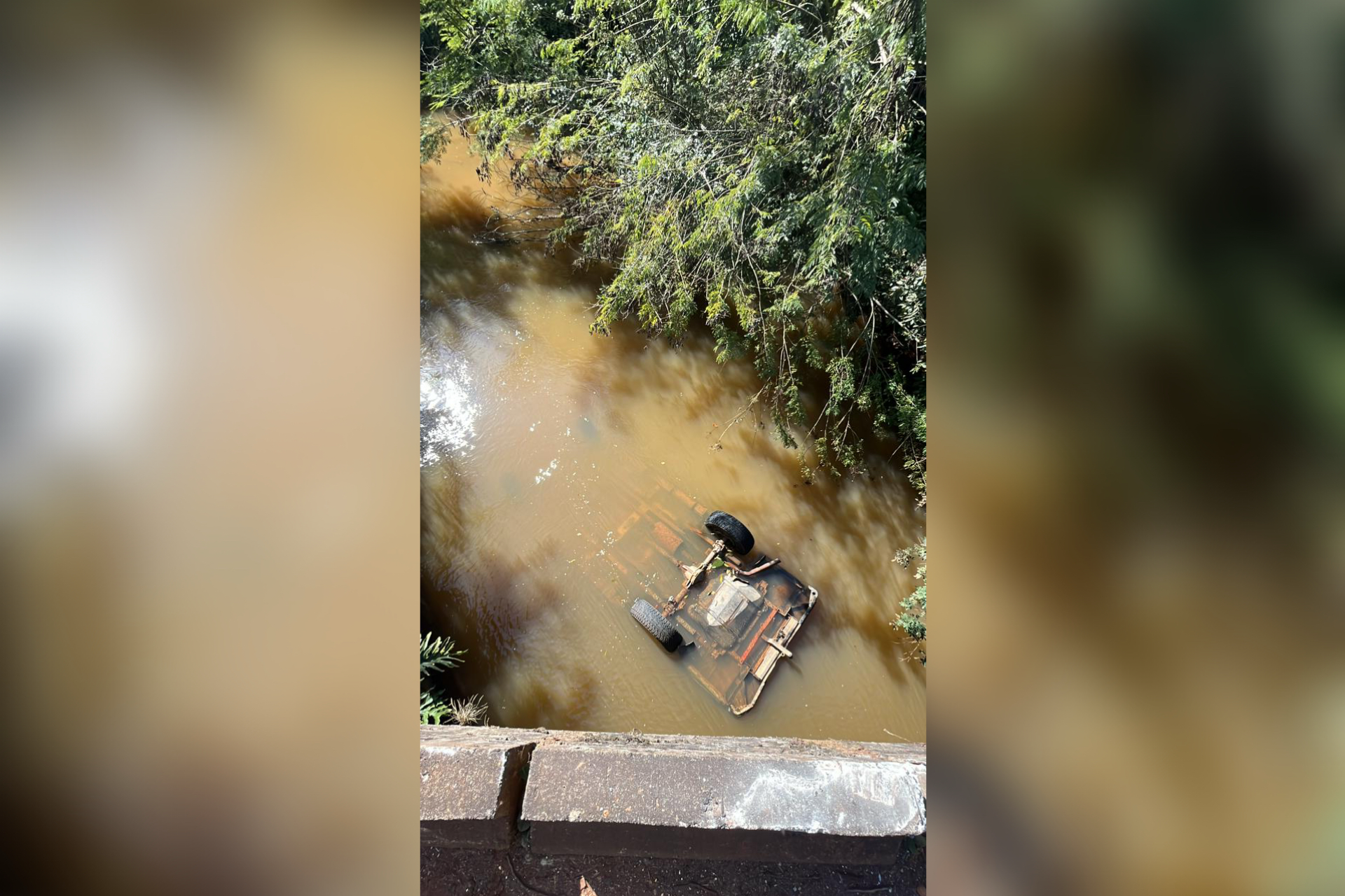 Conforme o Corpo de Bombeiros, o condutor perdeu o controle da camionete, capotou e caiu dentro do Rio Azul, próximo a ponte.