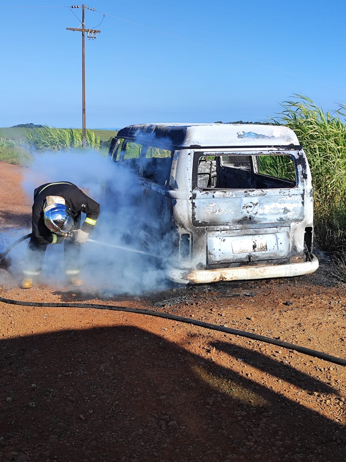 Os bombeiros contiveram as chamas, mas a Kombi ficou totalmente destruída.