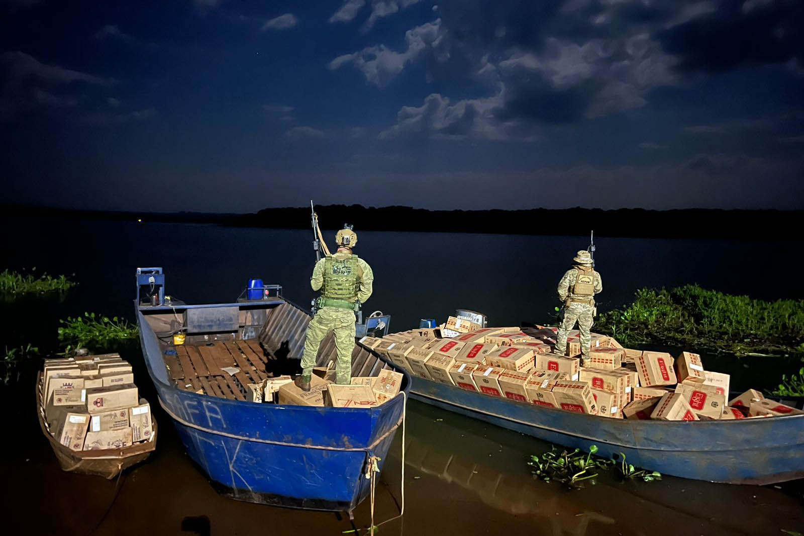 O Batalhão de Polícia de Fronteira da Polícia Militar, em ação integrada com policiais federais durante a Operação Hórus, apreendeu três embarcações carregadas com cerca de 30 mil pacotes de cigarros contrabandeados. A ação aconteceu nesta terça-feira (7), em Mercedes, município do Oeste do Paraná, na fronteira com o Paraguai.