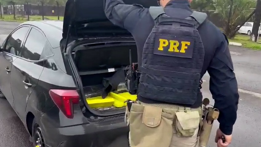 Durante a vistoria, os policiais localizaram 316,8 quilos de maconha escondidos sob o assoalho traseiro, bancos e porta-malas do carro. O motorista (27 anos) informou que havia pegado o veículo já carregado em Foz do Iguaçu e levaria a droga até São Paulo/SP.