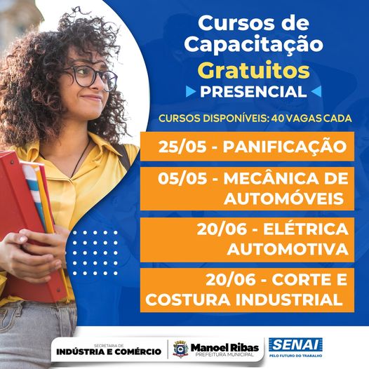A Prefeitura de Manoel Ribas, por meio da Secretaria Municipal de Indústria e Comércio, em parceria com o Serviço Nacional de Aprendizagem Industrial (Senai), está com inscrições abertas para quatro cursos gratuitos de capacitação.