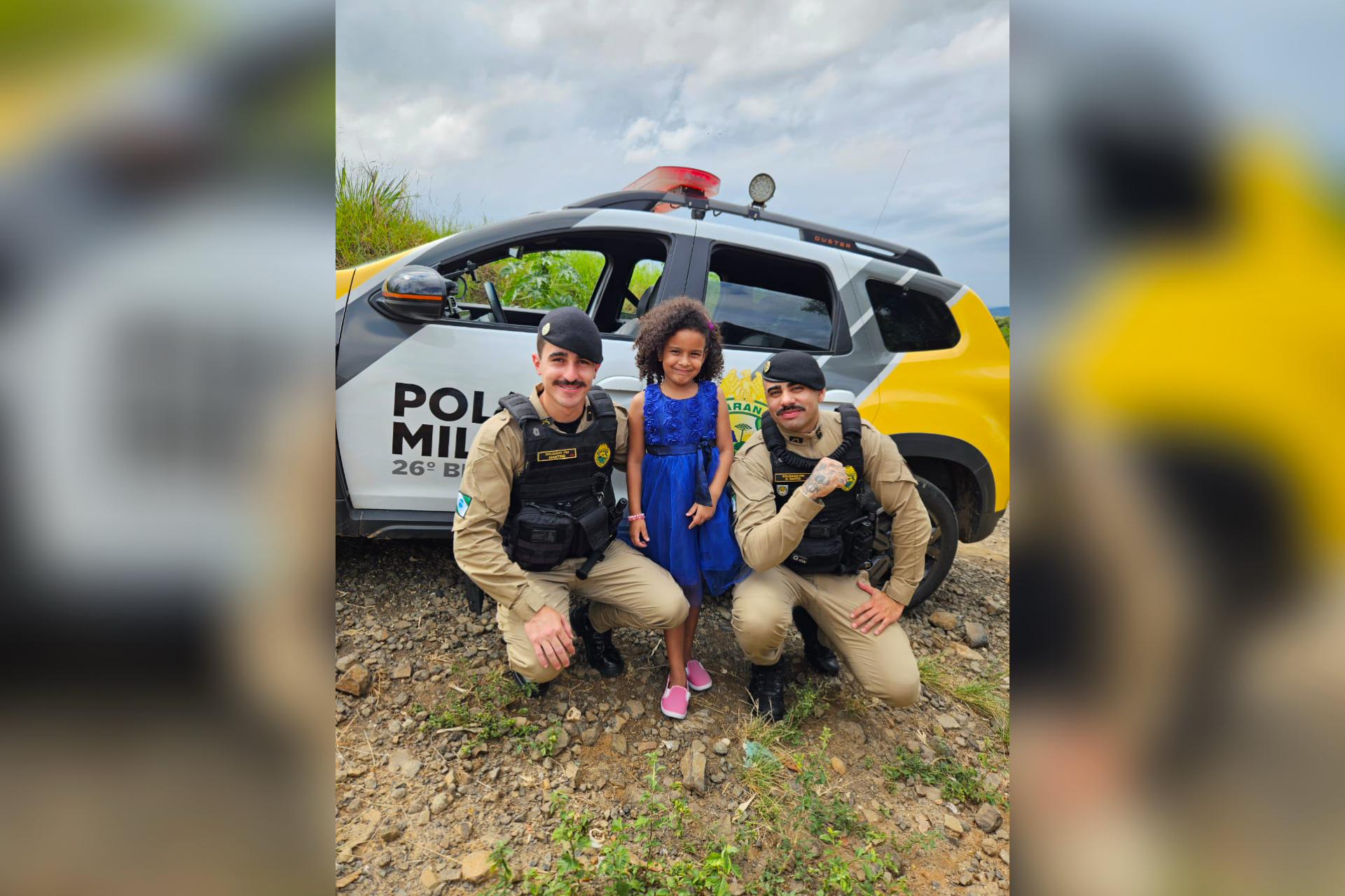 Menina de Cândido de Abreu recebe policiais militares em seu aniversário