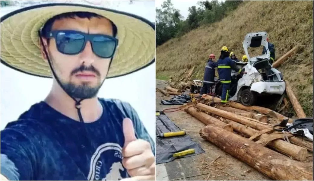 O acidente aconteceu quando o carro foi atingido por uma carga de madeira que caiu de um caminhão na rodovia. A Polícia Civil abriu um inquérito para investigar as causas.