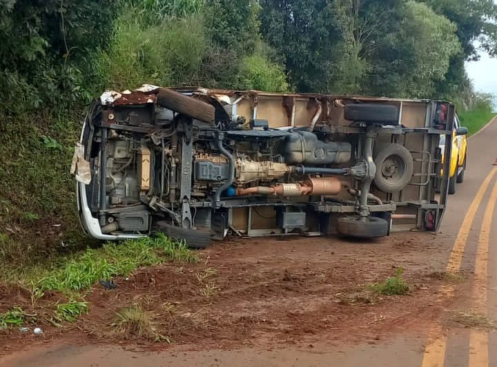 De acordo com a Polícia Rodoviária Estadual (PRE), um caminhão Hyundai/HR (com placas de São José dos Pinhais) tombou na rodovia.