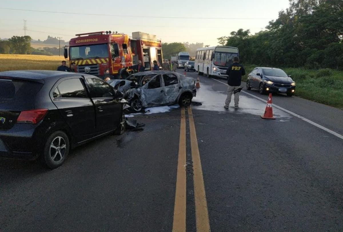 De acordo com a Polícia Rodoviária Federal (PRF), o Prisma tinha placas de Cubatão/SP e o Onix tinha placas de Prudentópolis/PR. Após a batida, o Prisma pegou fogo rapidamente e o motorista morreu carbonizado. A passageira do veículo foi socorrida em estado grave.